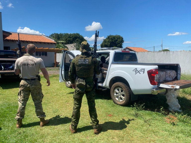 Ao retornar no endereço onde possivelmente foi iniciada fuga, havia duas caminhonetes, sendo constatada que as duas eram produto de furto e em seu interior havia grande quantidade de substância análoga a maconha, totalizando posteriormente quantidade superior a 1.28 tonelada de maconha apreendidas (628kg em um veículo e 657kg no outro).